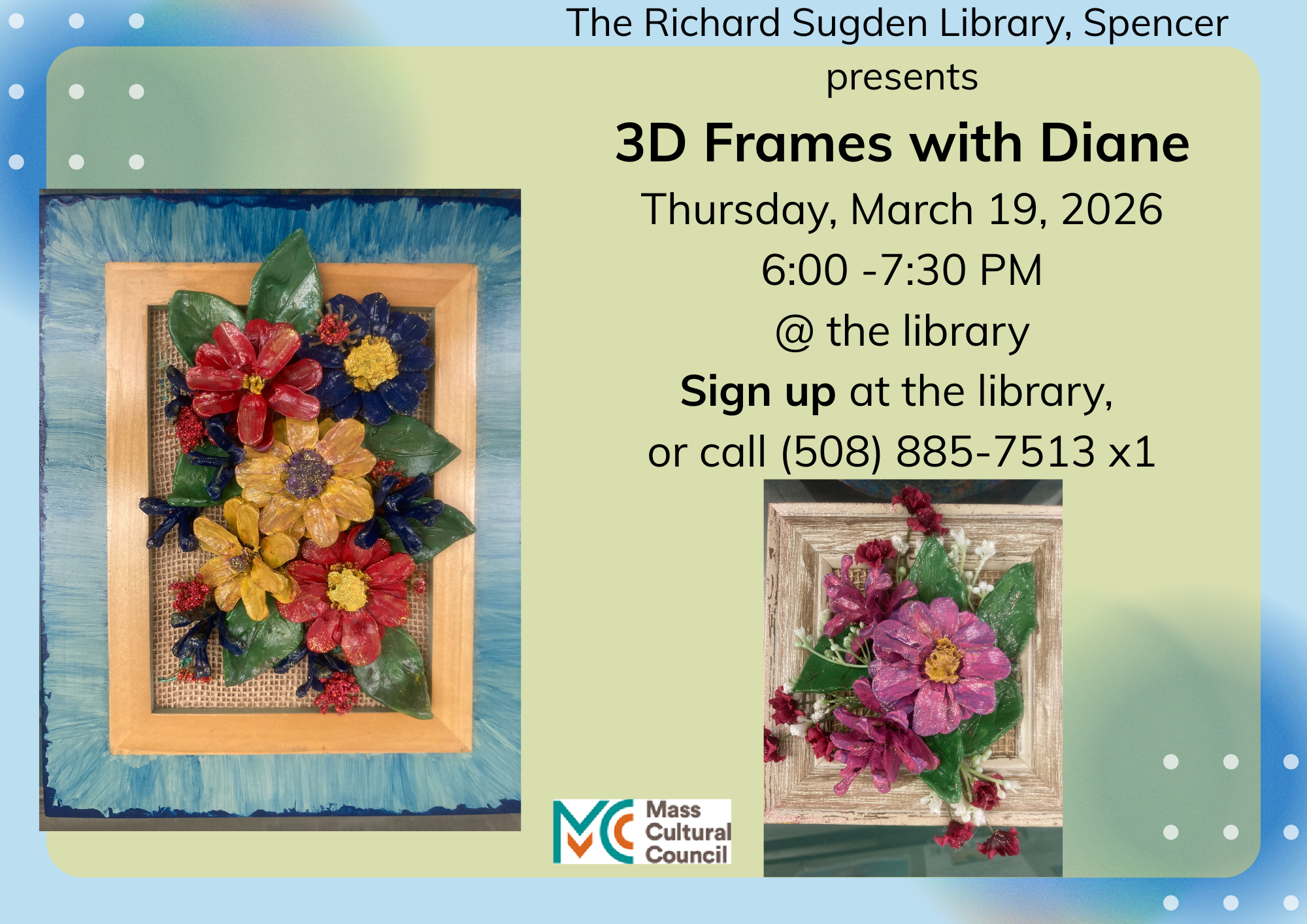 Meetings are held from 5:30pm -7:00pm at the Richard Sugden Library.