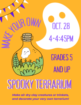 My Five Senses Thursday, October 23 from 10:00 – 11:00am. All activities relate to STEAM: science, technology, engineering, arts, and math! Children expand their problem-solving skills and develop social skills as they build & create.